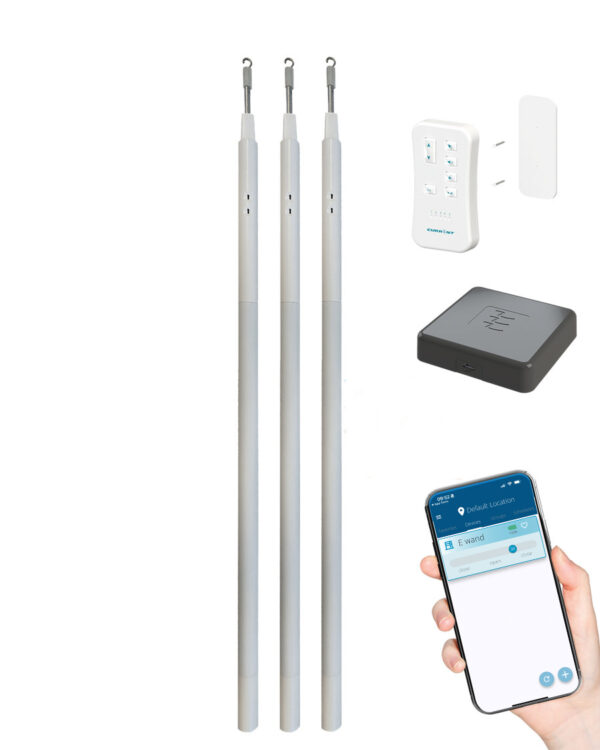 The E-Wand™ is an integratable wireless, retrofit solution for blind slat motorization on horizontal slatted blinds and wand tilt vertical blinds with a multitude of control methods including manual control, remote control, and grouping capabilities. Use the CPC Bridge (included) for app control and voice integration with Google Home and Amazon Alexa. E-Wands™ CAN be paired directly to third-party native Zigbee hubs.